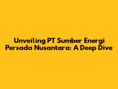 Unveiling PT Sumber Energi Persada Nusantara: A Deep Dive