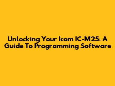 Unlocking Your Icom IC-M25: A Guide To Programming Software