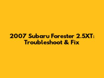2007 Subaru Forester 2.5XT: Troubleshoot & Fix
