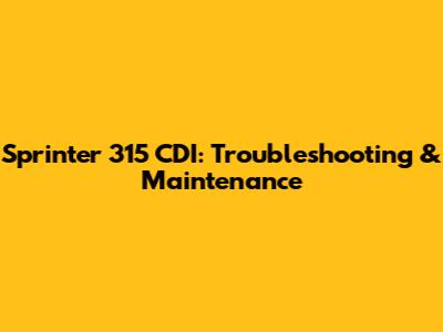 Sprinter 315 CDI: Troubleshooting & Maintenance