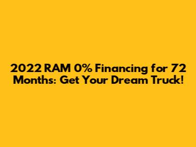 Hey guys! Ever dreamt of rolling out in a brand-new 2022 RAM truck but felt like the financing was holding you back? Well, buckle up, because we're diving deep into the awesome world of 2022 RAM 0% financing for 72 months. This deal is seriously a game-changer for anyone looking to snag a tough, reliable RAM without breaking the bank on interest payments. We're talking about getting a massive amount of time – six whole years – to pay off your truck, and the cherry on top? Zero percent interest. Yeah, you heard that right! This means every single dollar you pay goes directly towards the price of your truck, making it more affordable than you might think. So, if you're in the market for a truck that can handle anything you throw at it, from weekend adventures to tough job sites, this financing offer is definitely worth exploring. Let's break down what this means for you, who qualifies, and how you can take advantage of this fantastic opportunity to own a 2022 RAM.