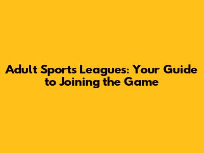 Why Join Adult Sports Leagues?