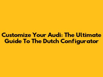 Customize Your Audi: The Ultimate Guide To The Dutch Configurator