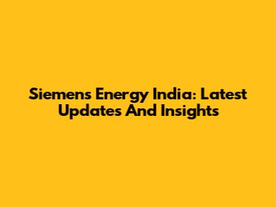 Siemens Energy India: Latest Updates And Insights