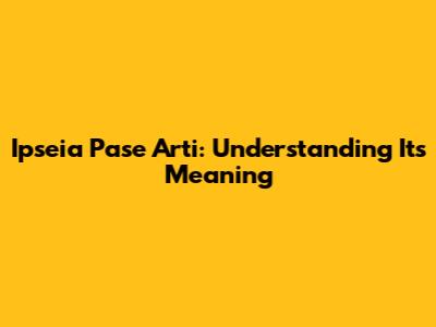Ipseia Pase Arti: Understanding Its Meaning