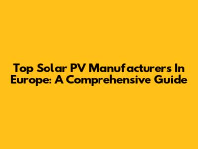 Top Solar PV Manufacturers In Europe: A Comprehensive Guide