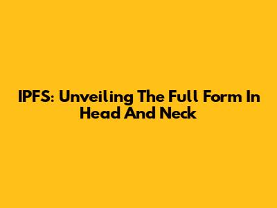 IPFS: Unveiling The Full Form In Head And Neck