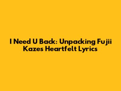 I Need U Back: Unpacking Fujii Kaze's Heartfelt Lyrics