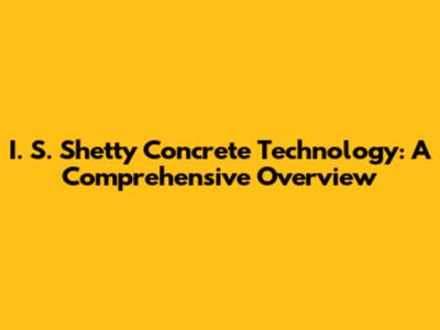 I. S. Shetty Concrete Technology: A Comprehensive Overview