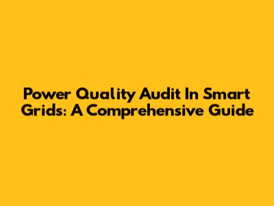 Power Quality Audit In Smart Grids: A Comprehensive Guide