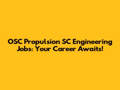 OSC Propulsion SC Engineering Jobs: Your Career Awaits!