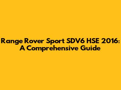 Range Rover Sport SDV6 HSE 2016: A Comprehensive Guide