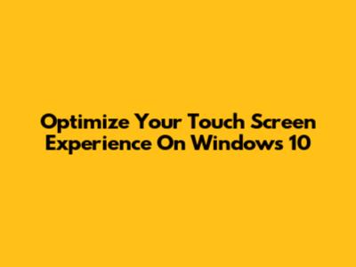 Optimize Your Touch Screen Experience On Windows 10
