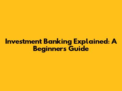 Investment Banking Explained: A Beginner's Guide