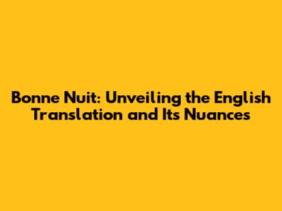 What Does "Bonne Nuit" Mean in English?