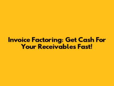 Invoice Factoring: Get Cash For Your Receivables Fast!