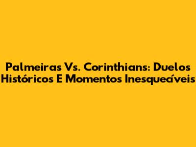 Palmeiras Vs. Corinthians: Duelos Históricos E Momentos Inesquecíveis