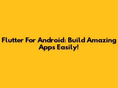 Flutter For Android: Build Amazing Apps Easily!