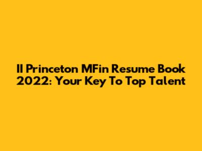 II Princeton MFin Resume Book 2022: Your Key To Top Talent