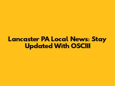 Lancaster PA Local News: Stay Updated With OSCIII