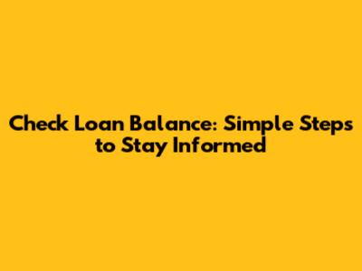 By using these methods and tips, you can easily check your loan balance and stay informed about your financial obligations. Staying proactive and informed is the best way to manage your loans effectively!