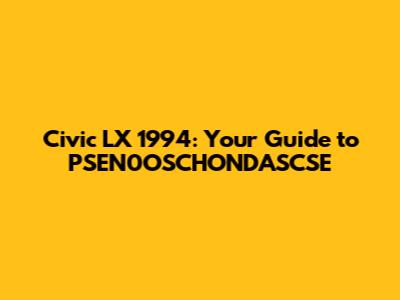Okay, let's address the elephant in the room – PSEN0OSCHONDASCSE. It looks like a random string of characters, right? In the context of a 1994 Honda Civic LX, it's likely a reference to specific parts, systems, or even a combination of issues related to the car. Given that it's not a standard automotive term, it could be a typo, a specific code used in a forum, or even an internal designation.