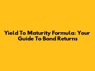 Yield To Maturity Formula: Your Guide To Bond Returns