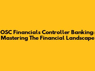 OSC Financials Controller Banking: Mastering The Financial Landscape