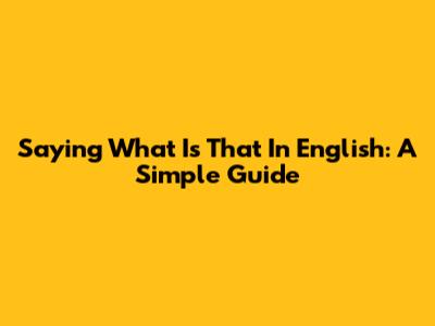 Saying "What Is That" In English: A Simple Guide