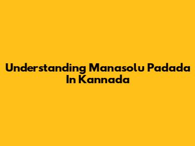 Understanding Manasolu Padada In Kannada