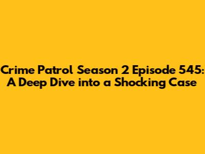Hey guys! Let's dive into a detailed recap and review of Crime Patrol Season 2, Episode 545. This episode, like many others in the series, takes us on a thrilling and often disturbing journey through the dark underbelly of crime. We'll break down the plot, analyze the characters, and discuss the episode's overall impact. Get ready, because this one's a rollercoaster!