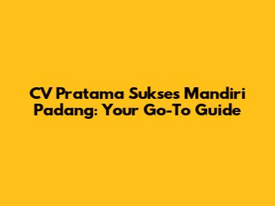 CV Pratama Sukses Mandiri Padang: Your Go-To Guide