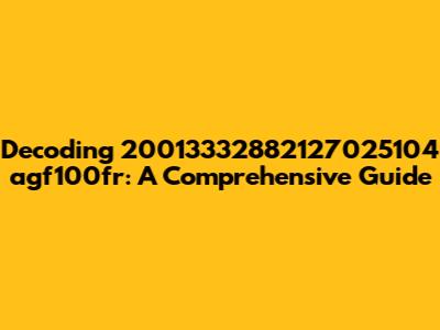 Let's dive deep into the mysterious realm of 20013332882127025104 agf100fr. If you've stumbled upon this alphanumeric string and are scratching your head, wondering what it signifies, you're in the right place. This comprehensive guide aims to dissect and understand every facet of this seemingly random sequence, providing clarity and context. Whether it's a product code, a serial number, or some other unique identifier, we'll explore the possibilities and arm you with the knowledge to decipher its meaning.