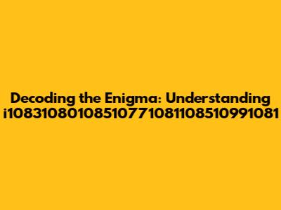 Have you ever stumbled upon a seemingly random string of characters and wondered what secrets it might hold? Today, we're diving deep into one such enigma: i10831080108510771081108510991081. This isn't just a jumble of letters and numbers; it's a code waiting to be cracked. In this comprehensive guide, we'll explore potential interpretations, analyze its structure, and consider various contexts where this string might appear. Whether you're a seasoned codebreaker or just curious about the hidden meanings behind seemingly random sequences, get ready for an insightful journey. We'll arm you with the knowledge and tools to understand, decode, and perhaps even create your own cryptic messages. So, buckle up, and let's embark on this exciting adventure together! From exploring its potential origins to deciphering its possible meanings, we'll leave no stone unturned in our quest to unravel the mystery of i10831080108510771081108510991081. Let's start our journey by deeply analyzing the composition of this alphanumeric string, breaking it down into smaller, more manageable segments, and then exploring the contexts in which it might be used. Through a systematic and thorough exploration, we aim to shed light on the possible meanings and applications of this intriguing sequence, offering you a comprehensive understanding of its potential significance.
