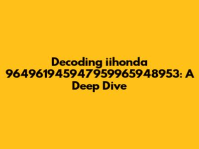 Okay, let's break down iihonda 964961945947959965948953. The initial "iihonda" likely indicates a connection to Honda, possibly an internal identifier or a typo (more on that later). The long string of numbers, "964961945947959965948953," is the real mystery here. Such a long sequence typically points to a part number, serial number, or some kind of unique identifier. To decode this effectively, consider these points: