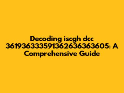 Let's dive into the world of iscgh dcc 361936333591362636363605. You might be scratching your head, wondering what this string of characters and numbers actually means. Well, you're not alone! Decoding seemingly random codes like this can feel like cracking a secret language, but with a systematic approach and some detective work, we can usually unravel the mystery. In this guide, we'll explore possible origins, potential uses, and how to approach deciphering such alphanumeric sequences. Understanding the nature of these codes is essential in various fields, from technology and logistics to data analysis and security. We’ll equip you with the knowledge to tackle similar challenges head-on. Whether you stumbled upon this code in a file, a database, or some other cryptic location, this guide is designed to help you understand its context and possible meaning. We will break down the components of the code, analyze its structure, and consider various scenarios where such a code might be used. By the end of this guide, you’ll have a clearer picture of what iscgh dcc 361936333591362636363605 could represent, and you’ll be better prepared to handle similar codes in the future. So, buckle up, grab your magnifying glass, and let’s get started on this decoding adventure!