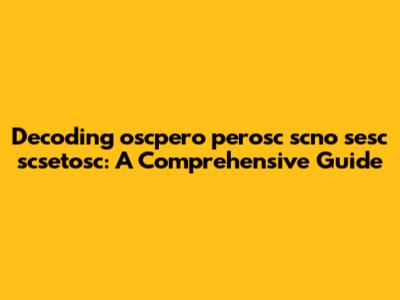 Hey guys! Ever stumbled upon a seemingly random string of characters and wondered what on earth it meant? Today, we're diving deep into the mysterious world of "oscpero perosc scno sesc scsetosc." This might look like gibberish at first glance, but trust me, we're going to break it down and explore potential meanings, contexts, and uses. Whether it's a coded message, a technical term, or just plain old jargon, understanding such strings can be super valuable. So, buckle up and let's get started!