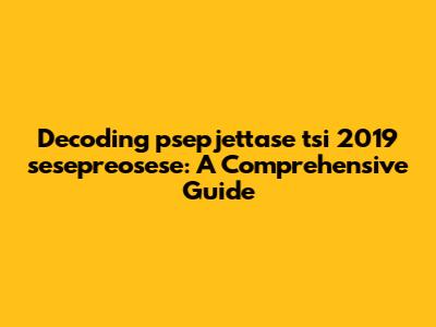 Okay, guys, let's dive into this intriguing topic: 'psepjettase tsi 2019 sesepreosese.' I know, it looks like a mouthful, right? But don't worry; we're going to break it down and try to figure out what it means or refers to. Sometimes, these seemingly random strings of characters actually hold a specific meaning, whether they're related to a particular event, a code, or even a typo that's become a meme. So, let's put on our detective hats and get started. Our goal here is to make sense of this unique phrase. It's all about understanding the possible context and origins. Think of it like deciphering a secret message. We'll explore different angles to see if we can uncover what 'psepjettase tsi 2019 sesepreosese' represents. It's a fun challenge, and who knows, we might just stumble upon something really interesting! Keep in mind, sometimes the most unusual phrases have the most fascinating stories behind them. This could be anything from a forgotten project name to a quirky inside joke. So, let's get started and unravel the mystery together. This whole process is like solving a puzzle. We start with the pieces we have – the letters and numbers – and try to fit them together in a way that makes sense. It might take some time and effort, but the reward of understanding the meaning behind this unique phrase will be well worth it. And remember, even if we don't find a definitive answer, the journey of exploration is valuable in itself. It encourages us to think critically, research thoroughly, and collaborate effectively. Plus, it's just plain fun to delve into the unknown and see what we can discover. So, let's embrace the challenge and see what we can learn about 'psepjettase tsi 2019 sesepreosese'.