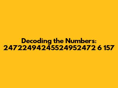 Decoding number sequences like "24722494245524952472 6 157" might seem daunting at first, but with a strategic approach and the right tools, you can unlock their hidden meanings and gain valuable insights. Whether it's product codes, serial numbers, or other identifiers, understanding these sequences can help you navigate the complexities of our data-driven world. So, keep exploring, keep learning, and never stop decoding!