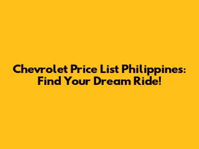 Chevrolet Price List Philippines: Find Your Dream Ride!