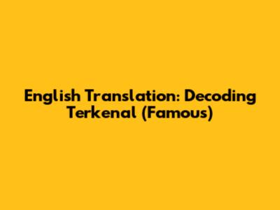| Read Also : English Translation: Decoding 'Terkenal' (Famous) -