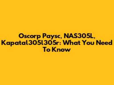 Oscorp Paysc, NAS305L, Kapatal305l305r: What You Need To Know