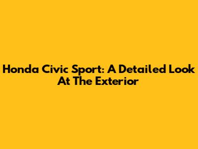 Honda Civic Sport: A Detailed Look At The Exterior