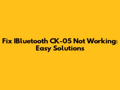 Fix IBluetooth CK-05 Not Working: Easy Solutions