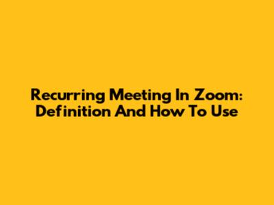 Recurring Meeting In Zoom: Definition And How To Use