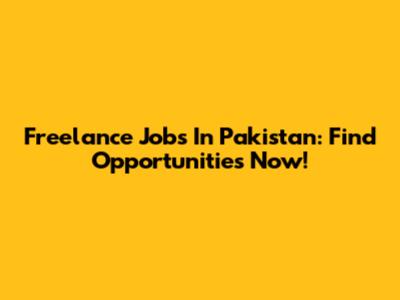 Freelance Jobs In Pakistan: Find Opportunities Now!