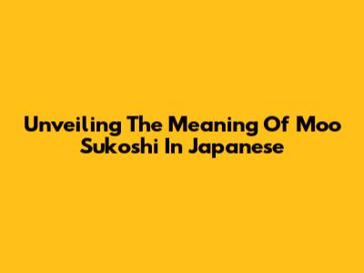 Unveiling The Meaning Of 'Moo Sukoshi' In Japanese