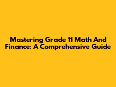 Mastering Grade 11 Math And Finance: A Comprehensive Guide