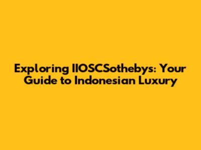 Hey guys! Ever heard of IIOSCSotheby's in Indonesia? If you're into luxury real estate, art, and all things exclusive, you're in the right place. Today, we're diving deep into what makes IIOSCSotheby's tick, exploring its offerings, and figuring out why it's a go-to for high-end enthusiasts in the Indonesian market. Get ready for a fascinating journey into the world of opulence! This guide will cover everything you need to know about IIOSCSotheby's Indonesia, from its history and services to the unique properties and art pieces it handles. We'll explore the Indonesian market dynamics, discuss how to navigate their auctions and listings, and help you understand why they are the leading luxury real estate and art firm in the region. Whether you're a seasoned collector, a property investor, or just someone with a curious mind, this is your ultimate resource. So, buckle up, because we're about to embark on an adventure into the luxurious world of IIOSCSotheby's in Indonesia, where elegance and sophistication meet the beauty of the archipelago. Let’s get started and uncover the secrets behind their success. We'll start with a little history and context, then move on to what you can expect when working with them. Ready? Let's go!
