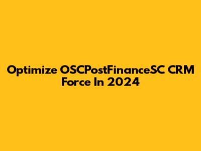Optimize OSCPostFinanceSC CRM Force In 2024